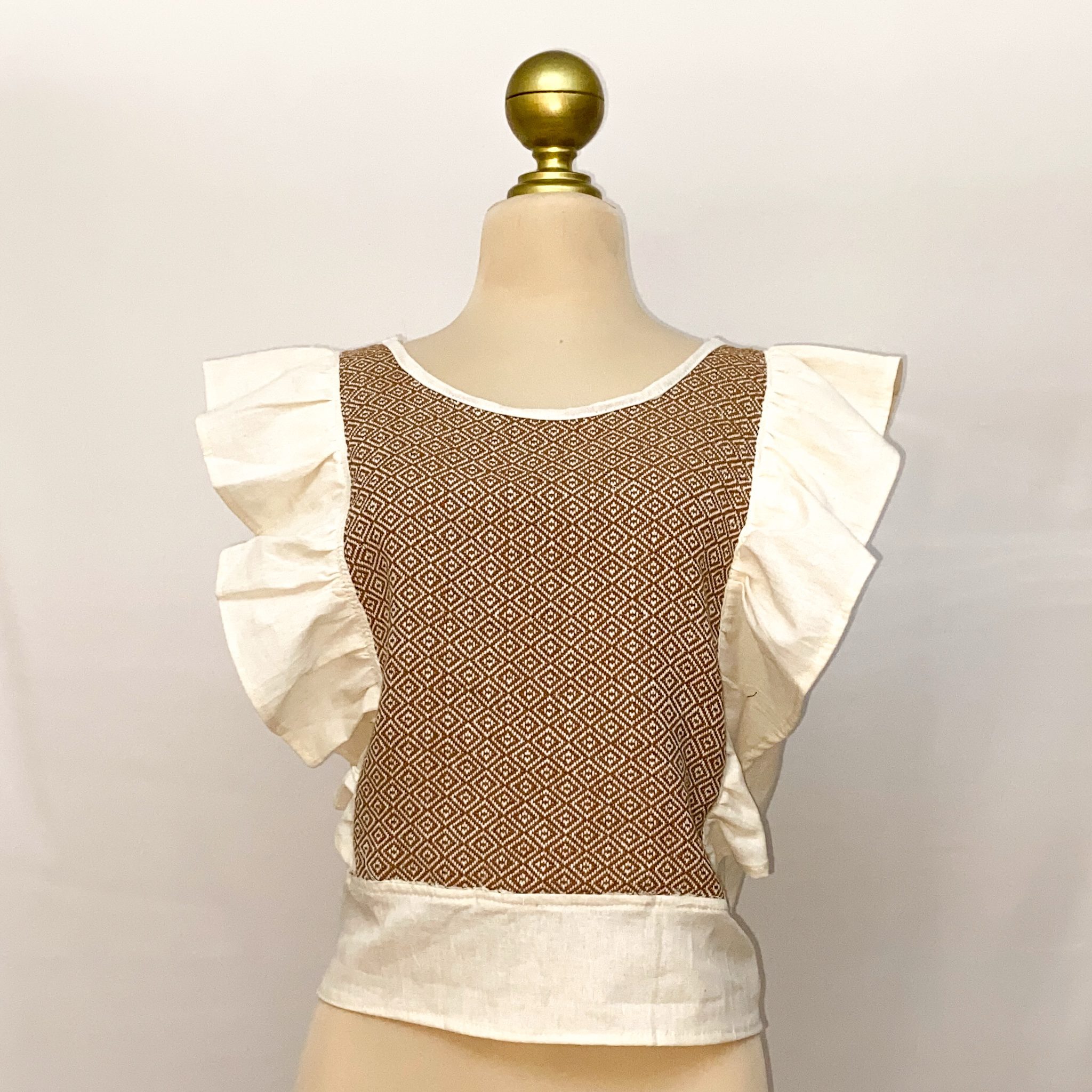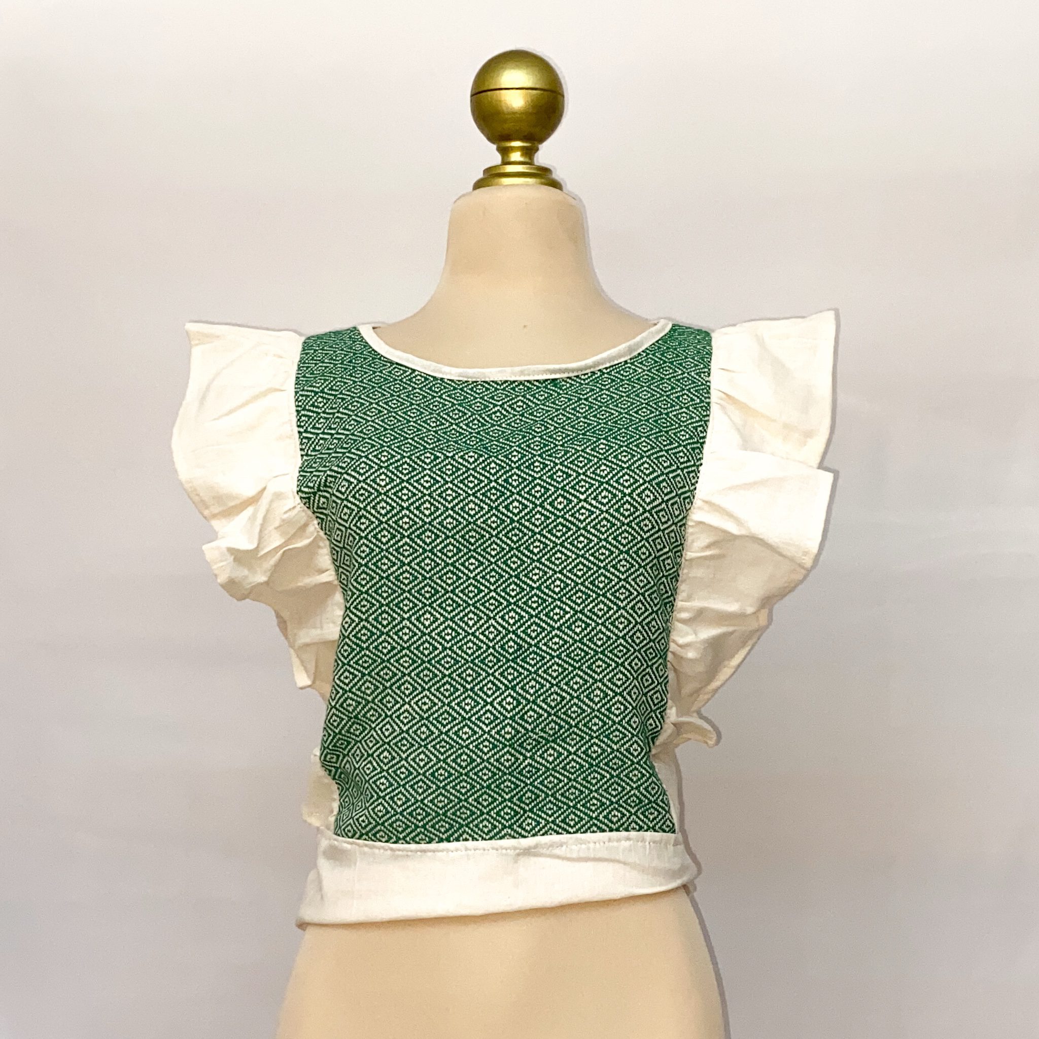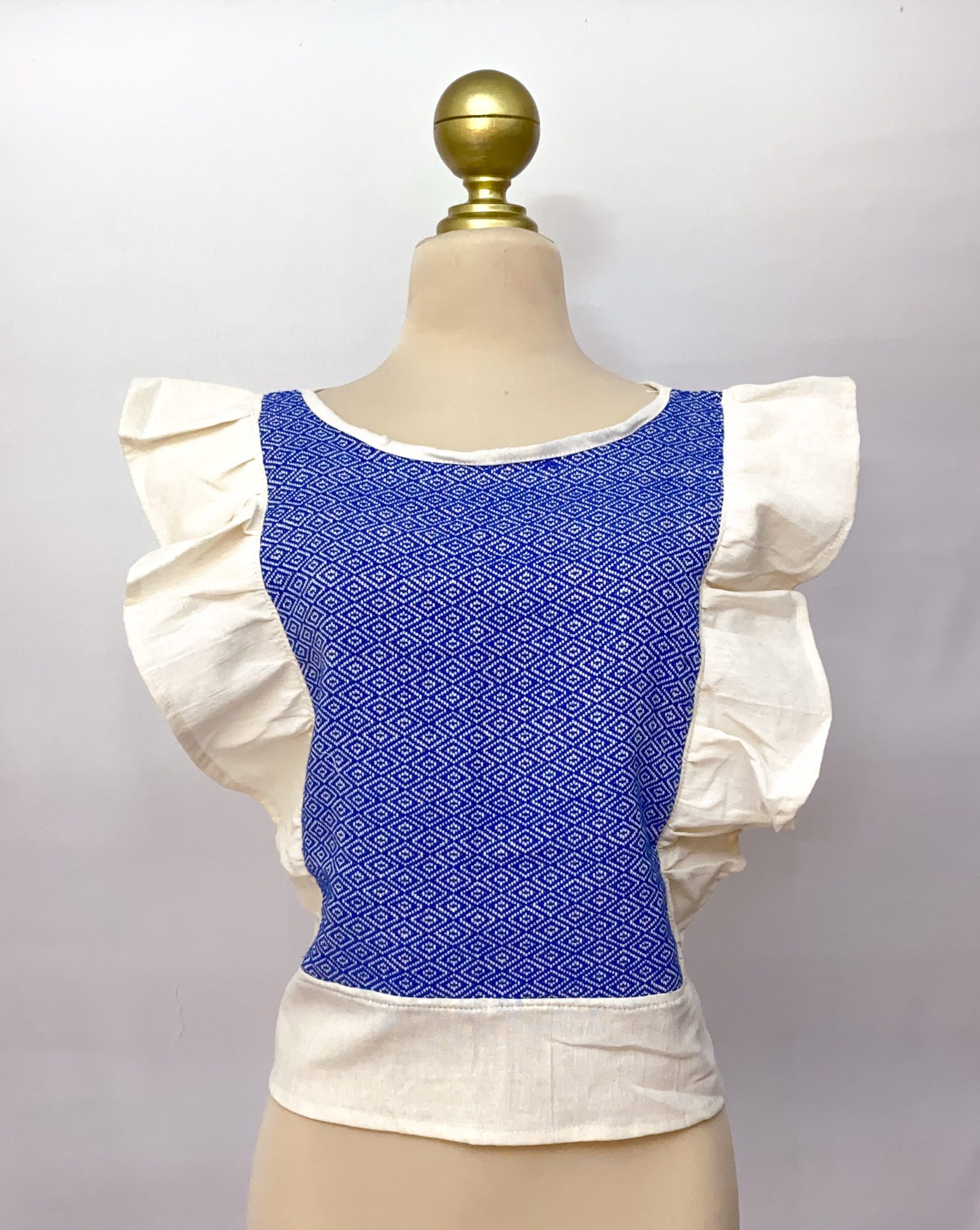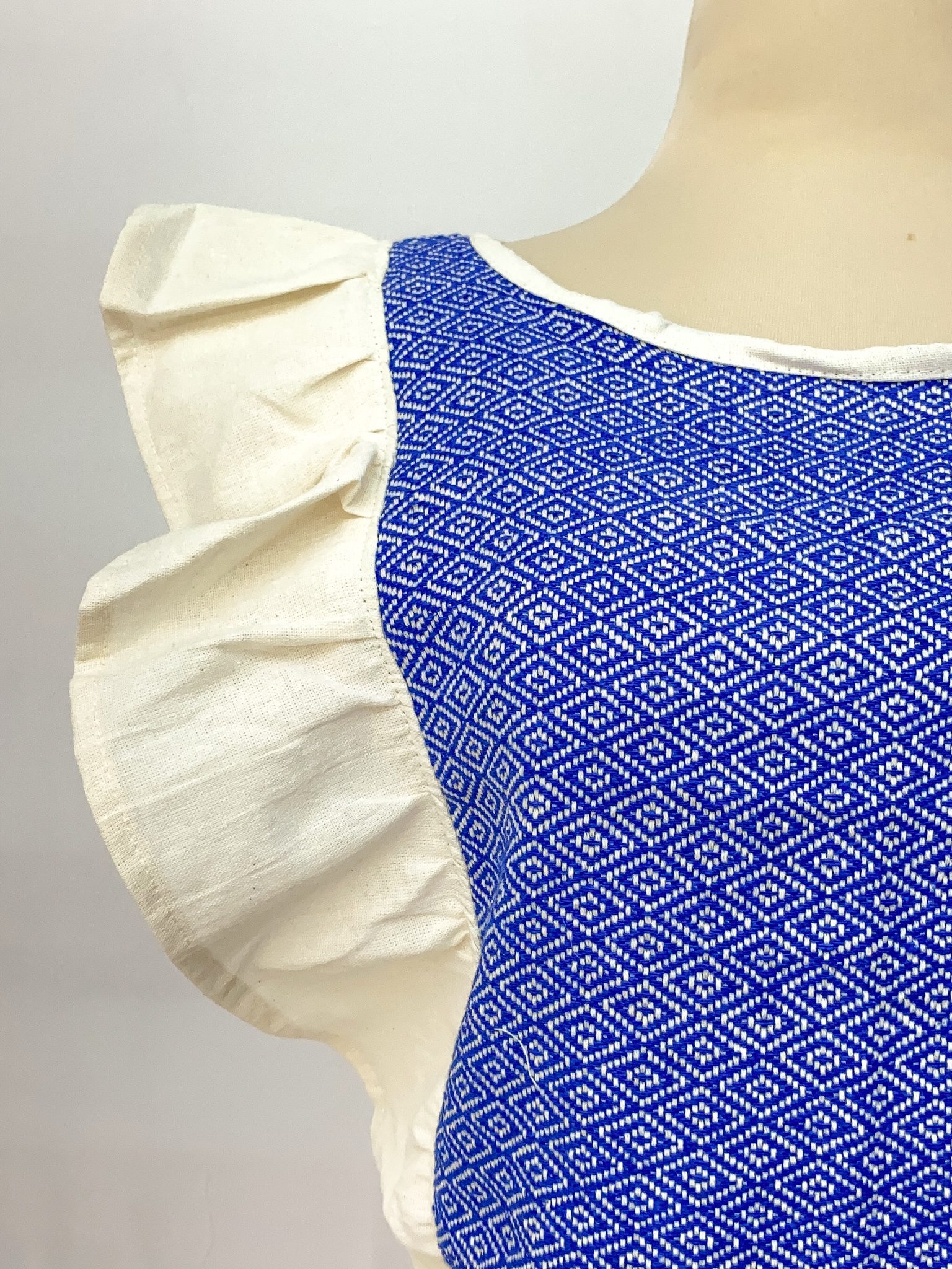Hecha en telar de pedal con algodón. Unitalla desde una XS hasta una 38.